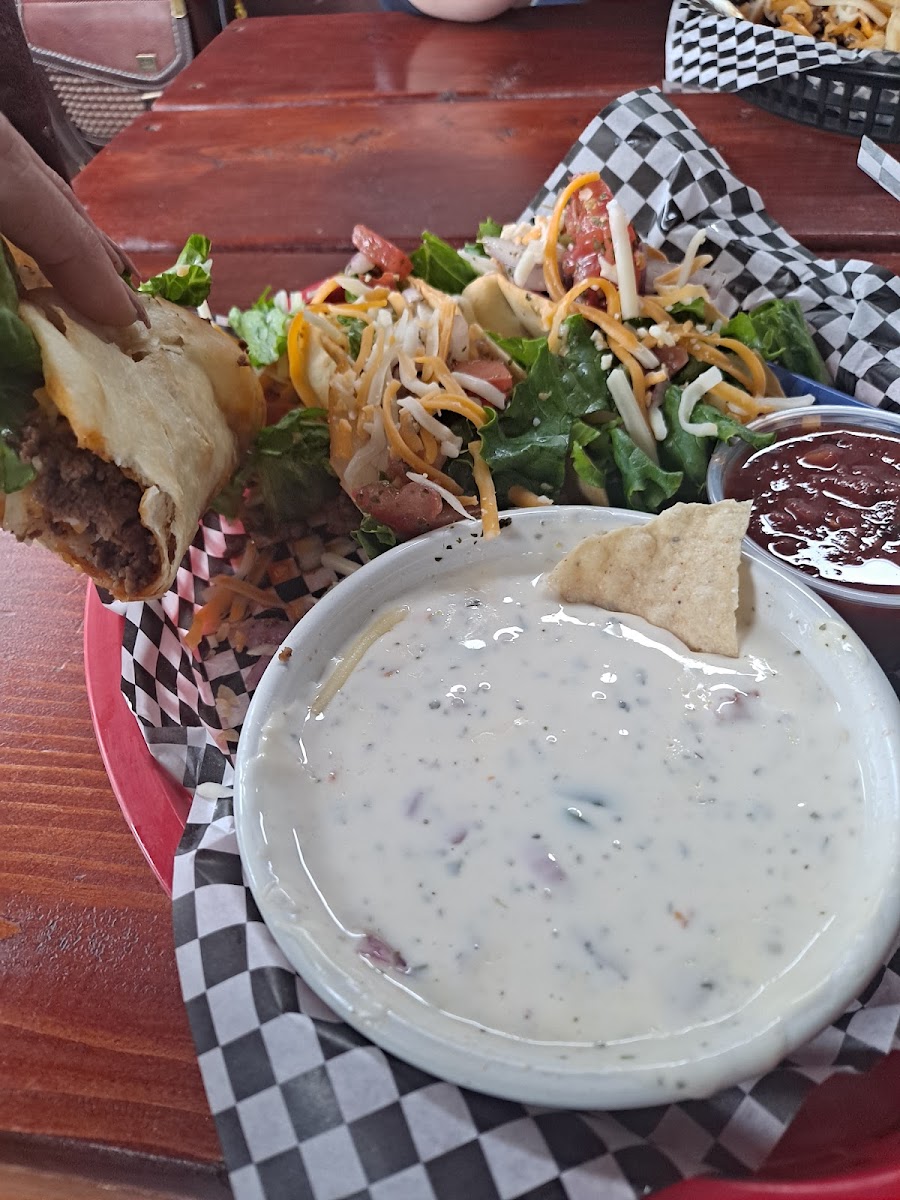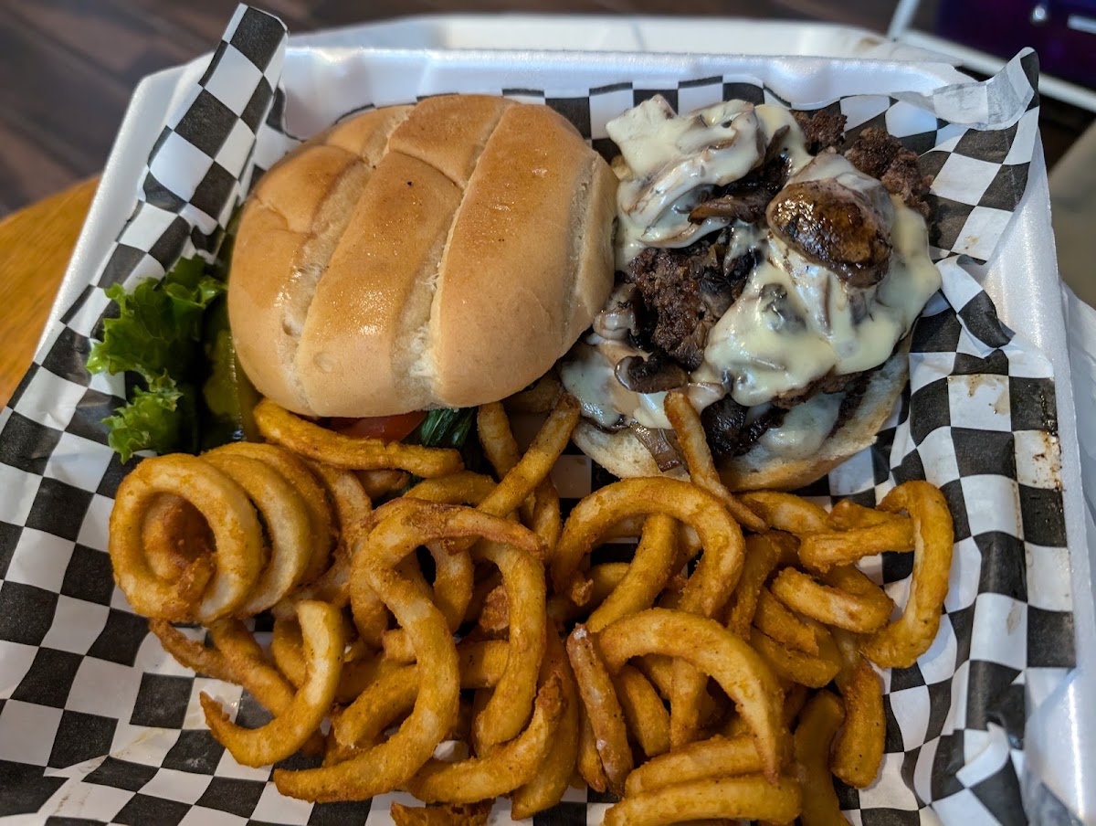 Omg I don't usually leave reviews at all but this place deserves 10 stars! The food is amazing (My husband I had burgers and curly fries- western and mushroom and swiss. Both were juicy and cooked to perfection).